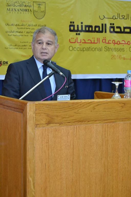 افتتح الأستاذ الدكتور رشدى زهران، رئيس جامعة اﻻسكندرية صباح اليوم احتفالية جامعة الاسكندرية باليوم العالمي للسلامة والصحة المهنية "ضغوط العمل - مجموعة التحديات" التى ينظمها قطاع خدمة المجتمع وتنمية البيئة بالجامعة برئاسة ا.د عصام الكردى نائب رئيس الجامعة لشئون خدمة المجتمع وتنمية البيئة وذلك بمركز مؤتمرات الجامعة بسموحة.