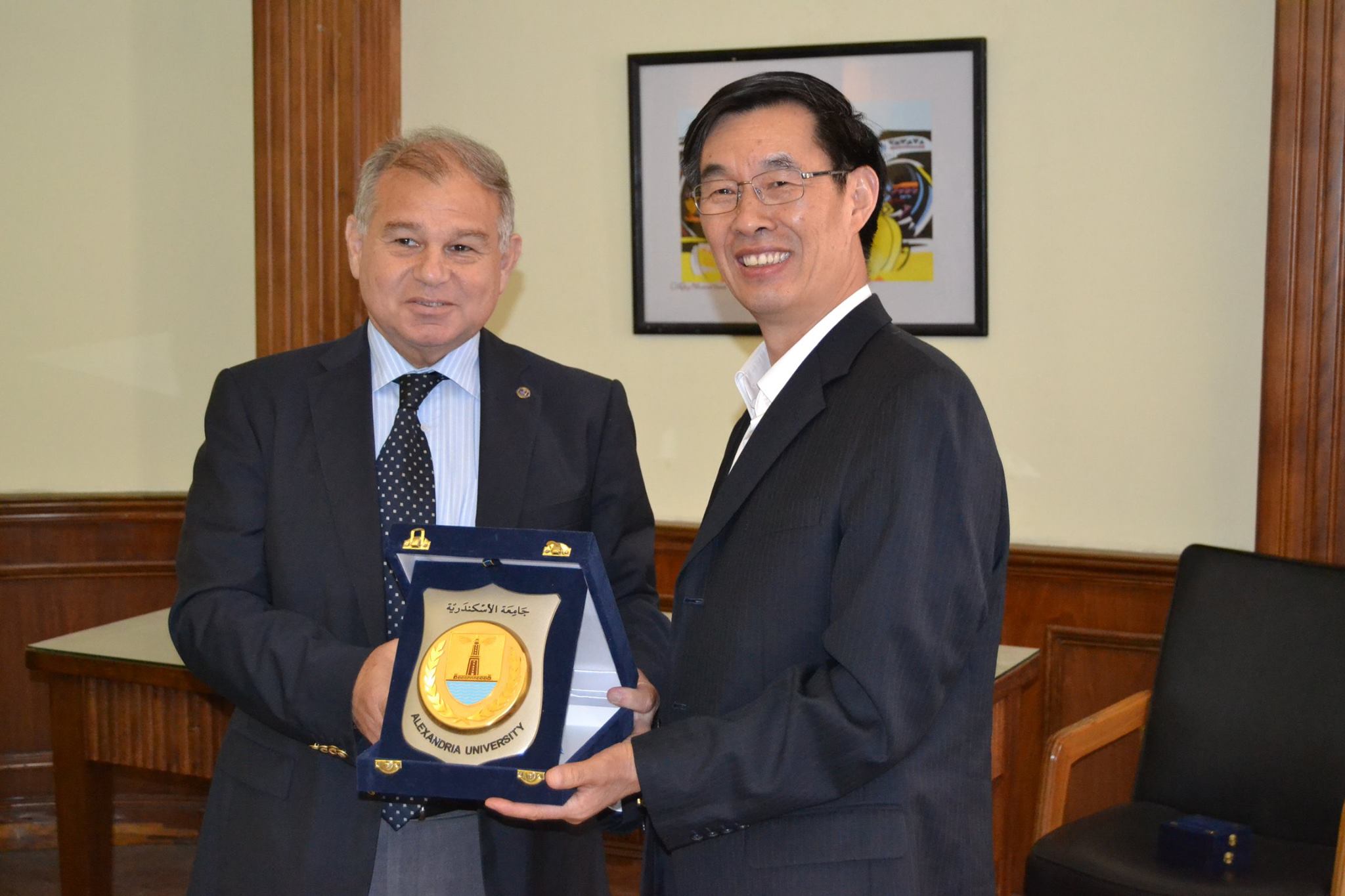 و اكد د. زهران على عمق العلاقات بين مصر والصين والتى نحتفل هذا العام بمرور 60 عاما عليها وحرص جامعة الاسكندرية على التعاون مع الجهات الاكاديمية العلمية والبحثية الصينية وتنمية مجالات التبادل العلمى والثقافى بينهما عن طريق عقد الشراكات العلمية وانشاء البرامج والمشروعات المشتركة ،و قدم د. زهران للوفد الصينى نبذة عن جامعة الاسكندرية للتعريف بخطتها الاستراتيجية وعلاقات الشراكة الدولية مع العديد من الجامعات والبرامج الجديدة بالكليات ومجالات الابحاث ذات الاهتمام والجهات الممولة لها والاتفاقيات الدولية والتعاون الدولى مع العديد من الجهات العلمية المرموقة .