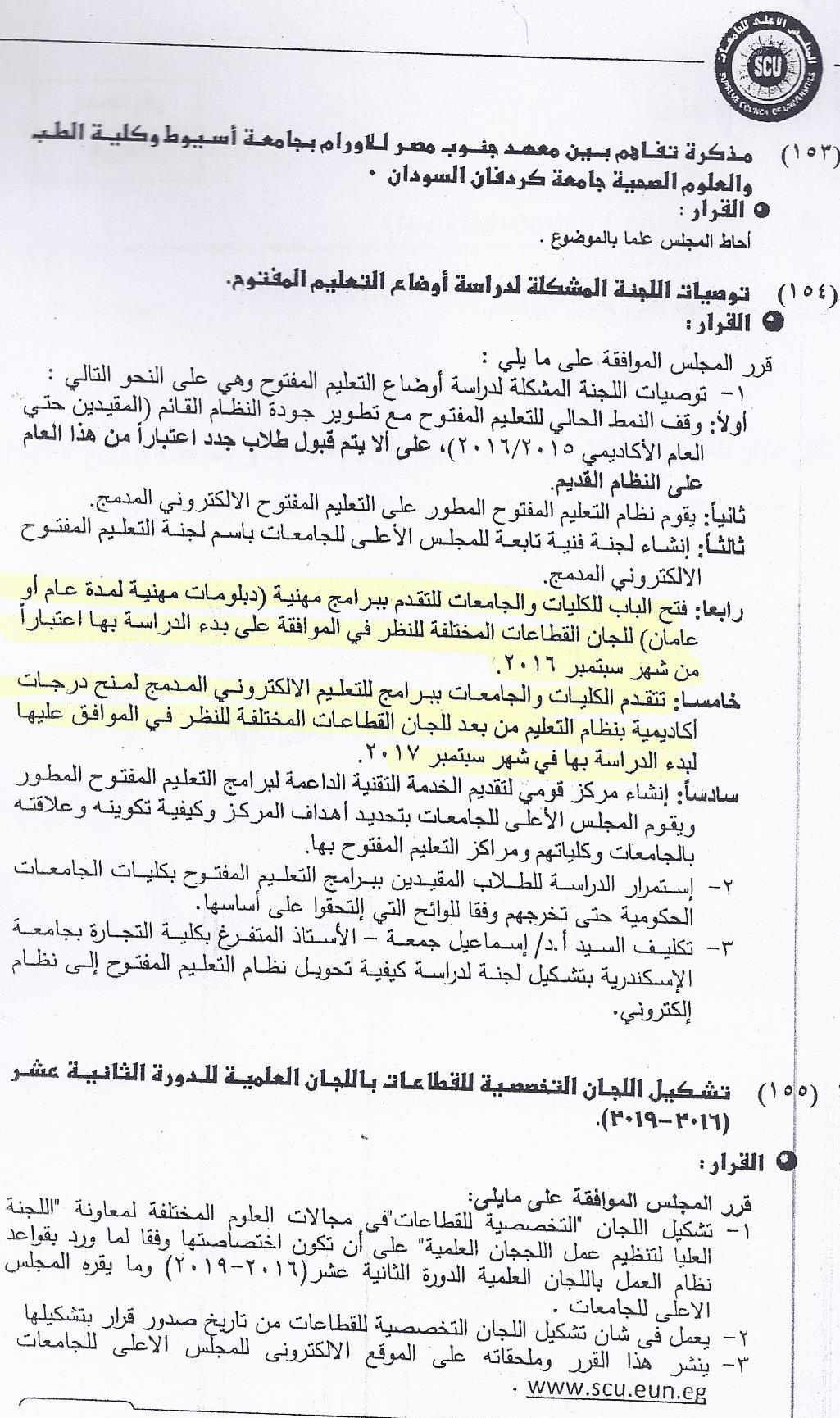 سادساً: قرار المجلس الأعلى للجامعتا