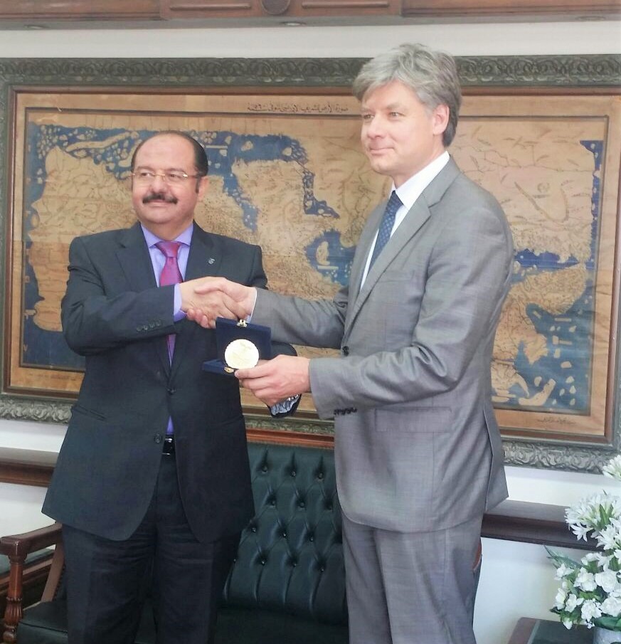 Dr. Abdel Salam Seddik presented the memorial Medal of the university to Dr. Roman Luckscheiter as appreciation for his efforts through the support of the DAAD to Alexandria University.