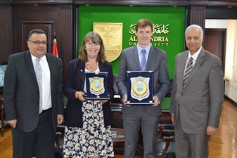 Alexandria University President Dr. Essam El-Kurdi recently received Mr. John Casson, Britain's ambassador in Cairo and Wendy Freeman Britain's consul general in Alexandria. The visit aims to support the relations and promote cooperation between the two sides in the scientific and academic areas of common interest as well as increasing scientific exchange and benefit from experiences.