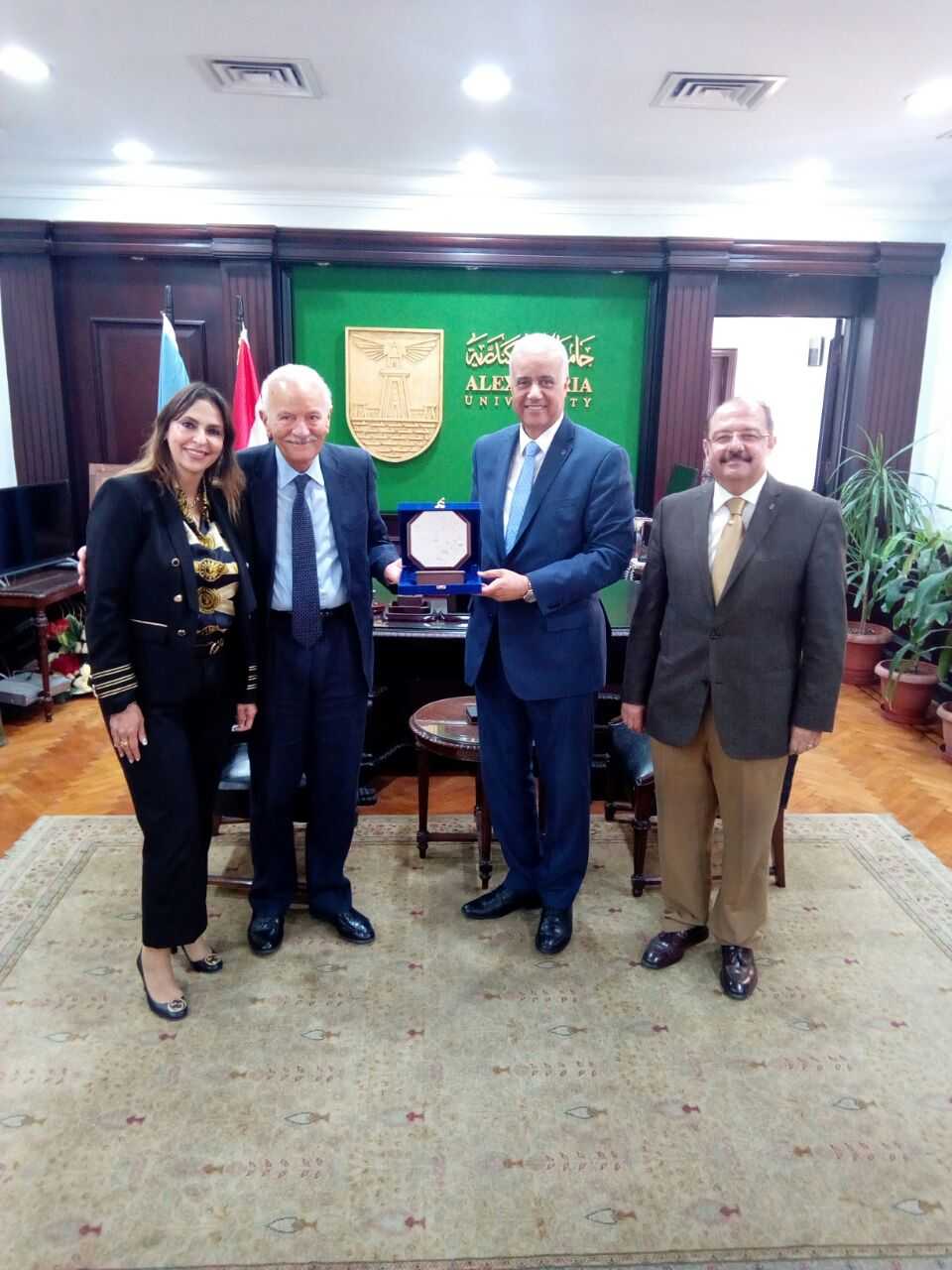 Within the framework of Alexandria University concern to enhance communication between the university and its distinguished graduates abroad, Dr. Essam El Kurdi the university president received Dr. Anwar Soliman the Chairman of Windtronix Energy Company in USA. Dr. Soliman was graduated from the Faculty of Commerce in Alexandria University in 1958 and obtained PhD degree from New York University. The meeting was attended by Dr. Seddik Abdel Salam the Secretary of the Supreme Council of Private Universities and Head of AU Graduate League, and Dr. Nehal Habashy the Director of Clinical Researches Center.