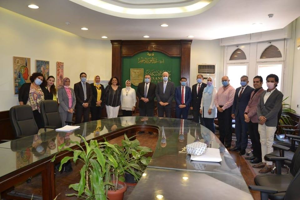 Dr. Essam Al-Kordi, President of Alexandria University and President of the Conference of Presidents of Francophone Universities in the Middle East for this session (CONFREMO), Dr. Khaled Khalaf, Executive Director of IBDL, and Dr. Noha Sultan, representative of the Francophone University Agency, delivered certificates of honor to faculty members who participated as trainers and as members of a committee Judging for the virtual regional student competition on "Entrepreneurship in the Middle East" REC, which was organized by Alexandria University in its capacity as Chair of the Conference of Presidents of Francophone Universities in the Middle East and held in cooperation with the Francophone University Agency, and with the support of the IBDL (International Business Leadership License), which organized and administered the competition on The website. Alexandria University students who won the second and sixth places in the competition were also honored.