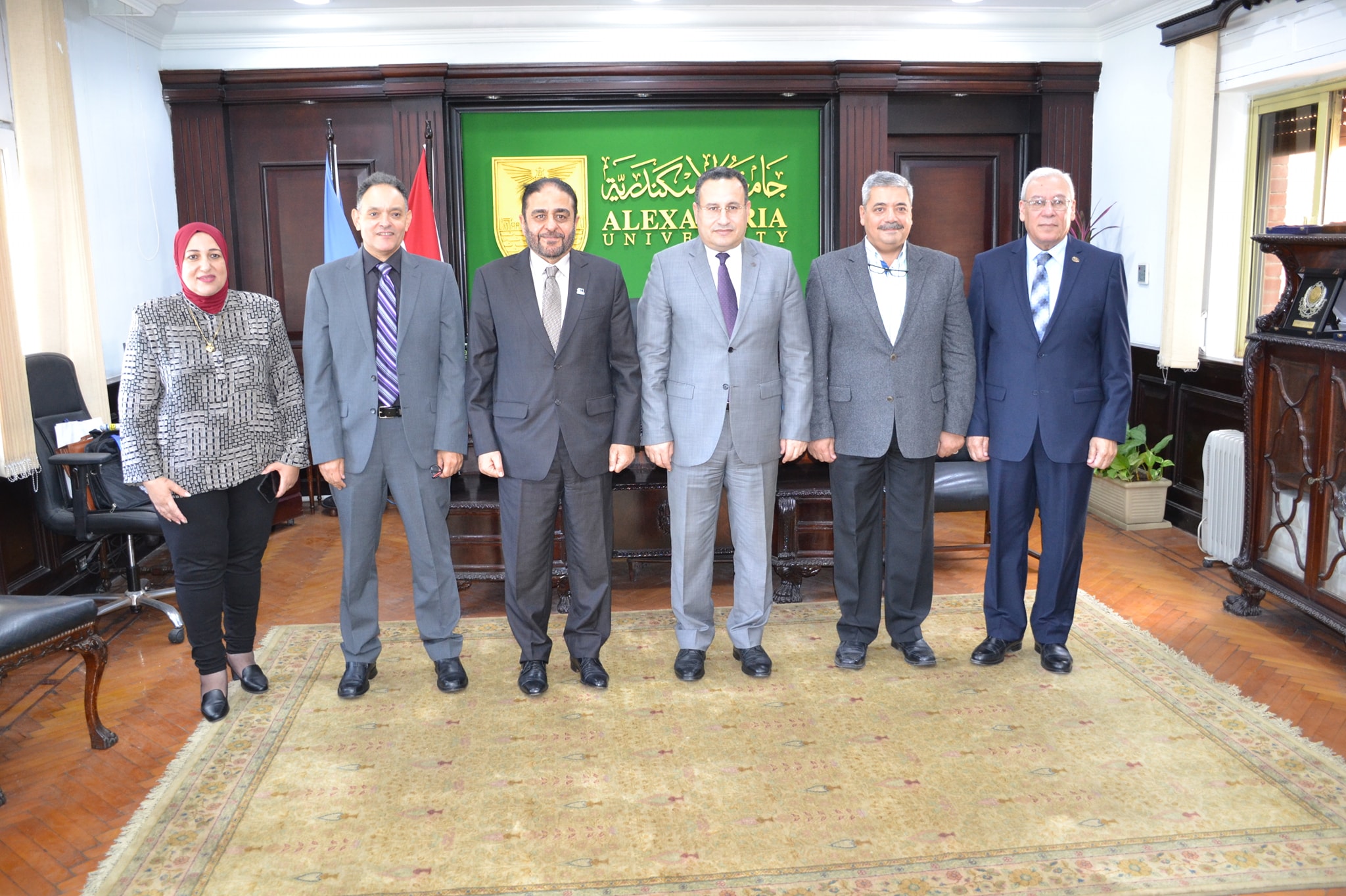 Dr. Abdelaziz Konsowa, President of Alexandria University, received yesterday evening, Dr. Mansour Al Awar, President of Hamdan Bin Muhammad Smart University in the United Arab Emirates, and his accompanying delegation, in the presence of Dr. Ashraf Al-Ghandour, Vice President of Alexandria University for Graduate Studies and Research.