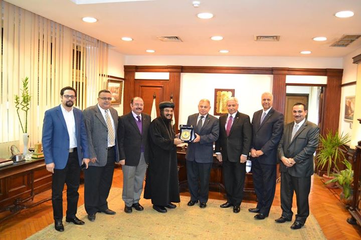 Prof. Dr. Roshdy Zahran, head of the University of Alexandria, received at noon on Sunday, January 3, 2016 Bishop Bavly, General Bishop and Assistant of Holiness Pope Tawadros II of Alexandria to serve the youth of Alexandria, where he congratulated the Patriarch and all Christians brothers on the occasion of new year and Christmas holiday.
