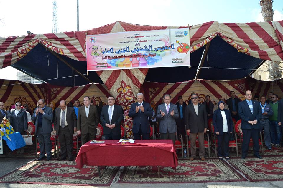 وأوضح الأستاذ الدكتور هشام جابر، نائب رئيس الجامعة لشئون التعليم والطلاب أن مراسم الافتتاح بدأت بالوقوف دقيقة لقراءة الفاتحة على أرواح ضحايا حافلة نويبع وأشار إلى أن عشائر 15 كلية تشارك فى المعرض إلى جانب وفد طلاب فرع الجامعة بمطروح الذى يقام على أرض كلية العلوم بطريق الحرية واستمر لمــدة 7 أيام تم خلاله عقد أربع ورش فنية وإعداد معارض الكليات المتنافسة بأرض المعرض، كما أشار إلى أنه سيتم الانتهاء من تحكيم أعمال الكليات المشاركة فى المعرض والإعلان عن النتائج عقب الافتتاح.